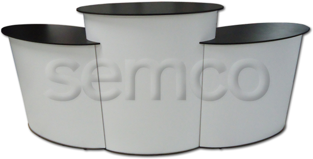 Tampo e base em MDF com acabamento texturizado preto ou branco (outras cores sob consulta), corpo do balcão em