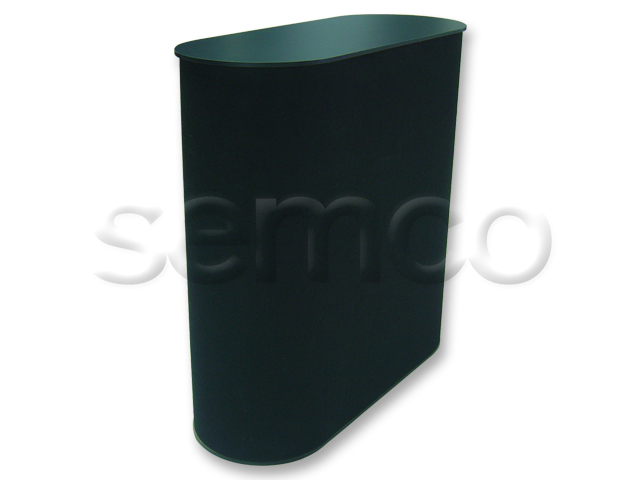 Tampo e base em MDF com acabamento texturizado preto ou branco (outra cor sob consulta), corpo do balcão em chapa de PSAI branca com revestimento em carpete (cor sob consulta) ou imagem adesivada. Prateleira interna. Porta traseira