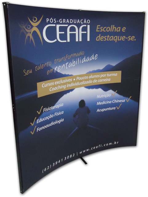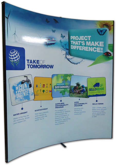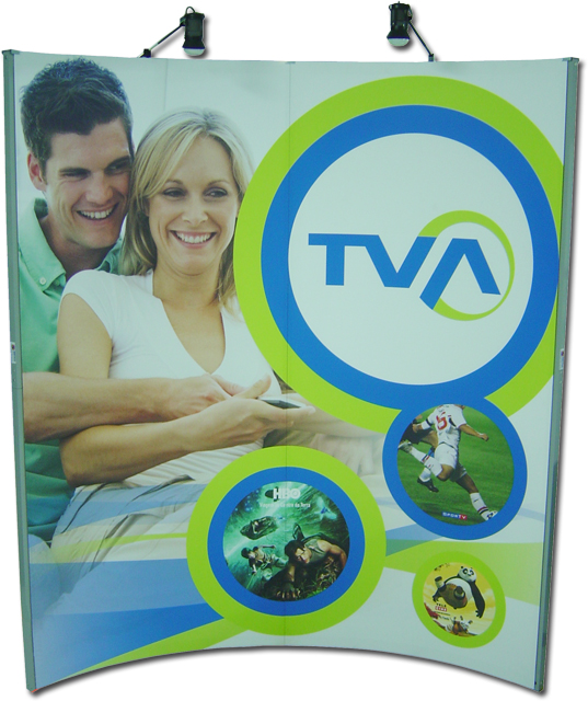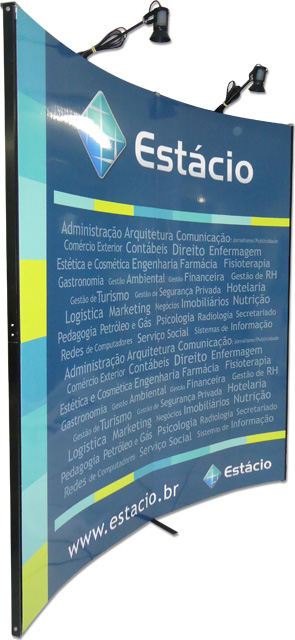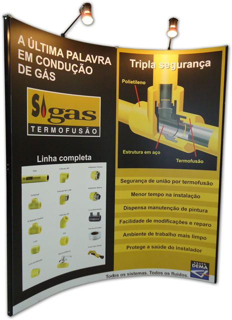 Indicado para ações em espaços pequenos, esta estrutura pode ser fabricada em 2 ângulos de 30º ou 45º, pode ser utilizado também como ponto de atendimento em hotéis, supermercados e estandes de 9m2.