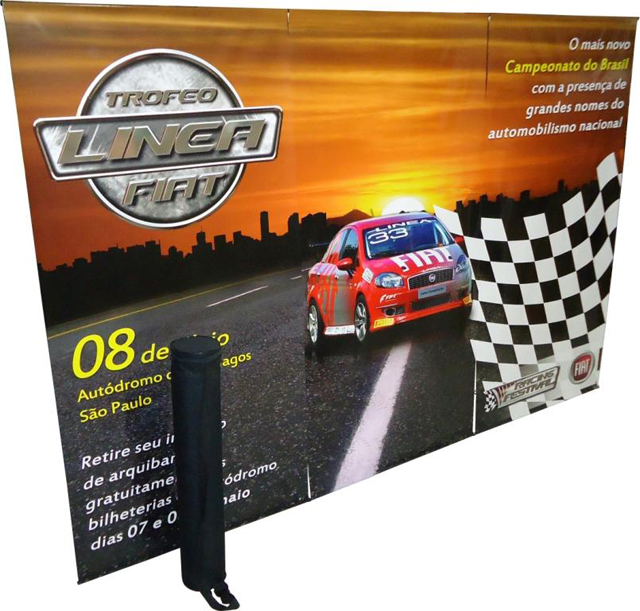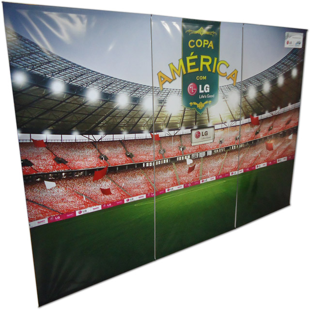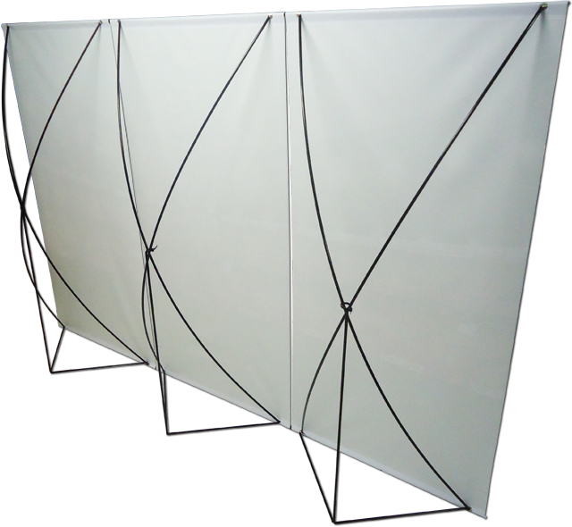 Painel composto por 03 porta banners Super X 90-185. Podem ser utilizadas juntas ou separadamente.